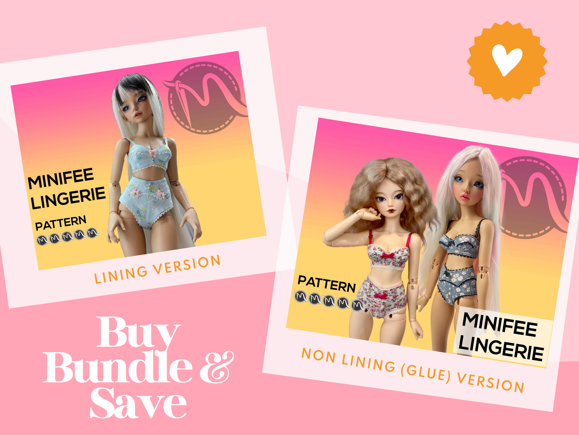 MiniFee doll lingerie set pattern with NO lining. Digital Download, Doll clothes patterns pdf, Advanced level.