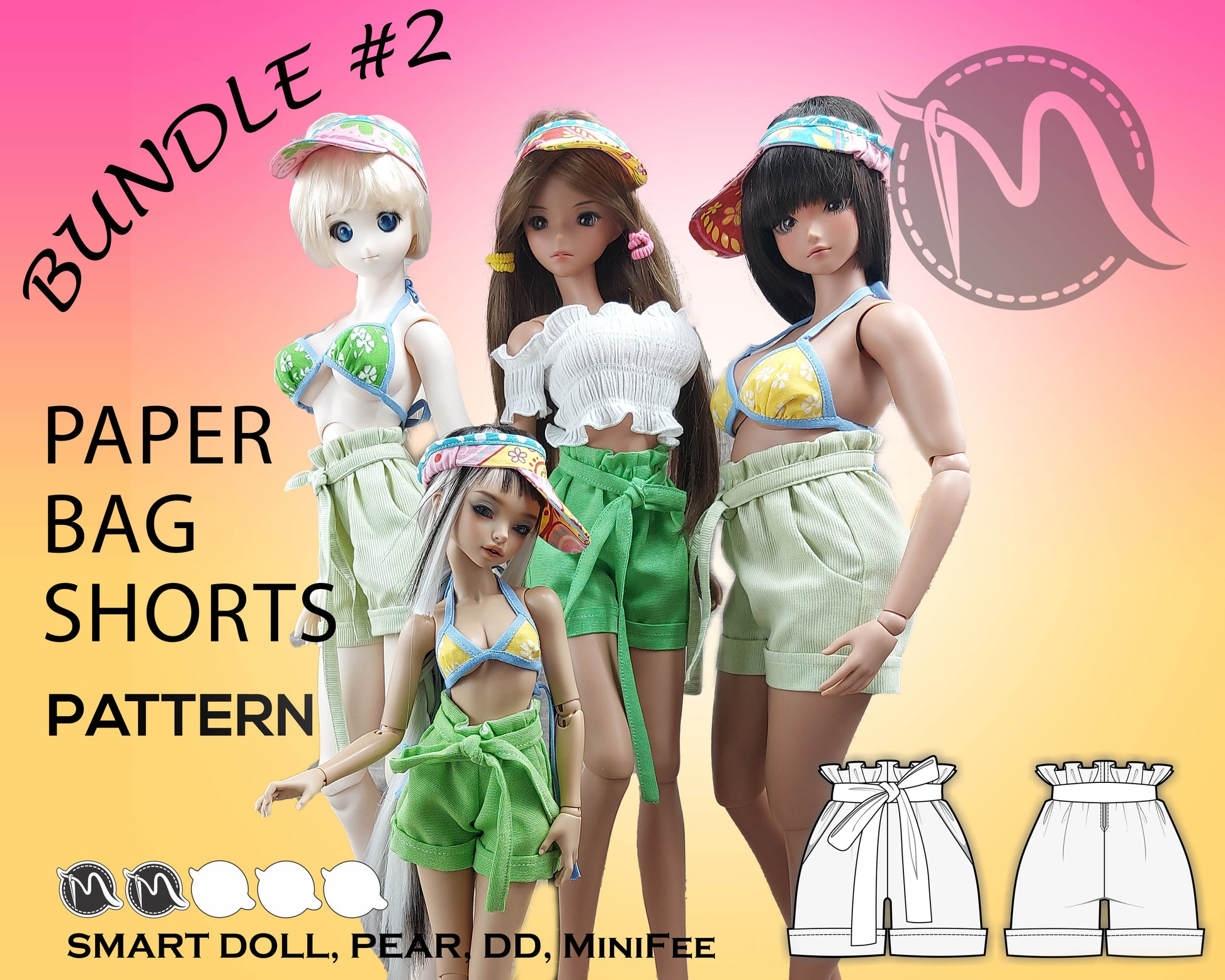 Paper Bag Shorts Bundle TWO. Sewing Pattern for Smart Doll, Pear, Dollfie Dream, and Minifee. Step-by-step. Doll clothes patterns PDF.