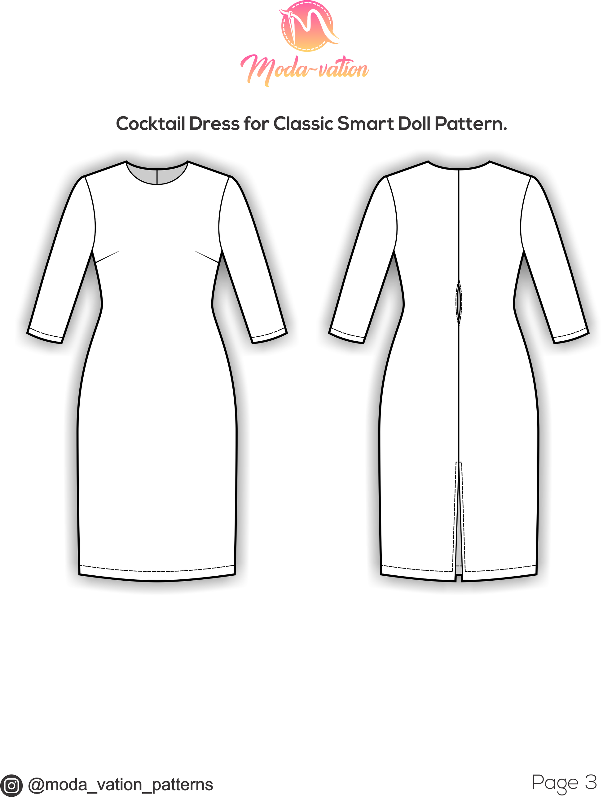 Smart Doll Cocktail Dress. Smart Doll Classic Pattern for three busts large, medium, and default. Doll clothes patterns PDF.